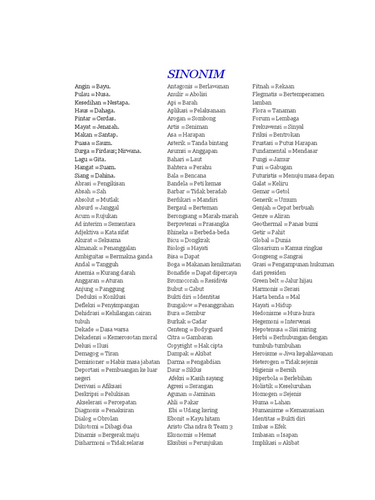 Contoh Sinonim Kata Dari A Z Secara Lengkap Tambah Pinter from i0.wp.com Unsur kohesi leksikal terdiri dari sinonim (persamaan), antonim (lawan kata), hiponim (hubungan bagian atau isi), repetisi (pengulangan), kolokasi (kata sanding), dan ekuivalensi. Jul 11, 2021 · 80 contoh soal psikotes dan jenis psikotes lengkap = psikotes berasal dari kata physico yang artinya mental fisik yang dimiliki manusia Jan 28, 2020 · artikel ini akan menyenaraikan peribahasa yang menggunakan perkataan "ayam" dalam masyarakat melayu.